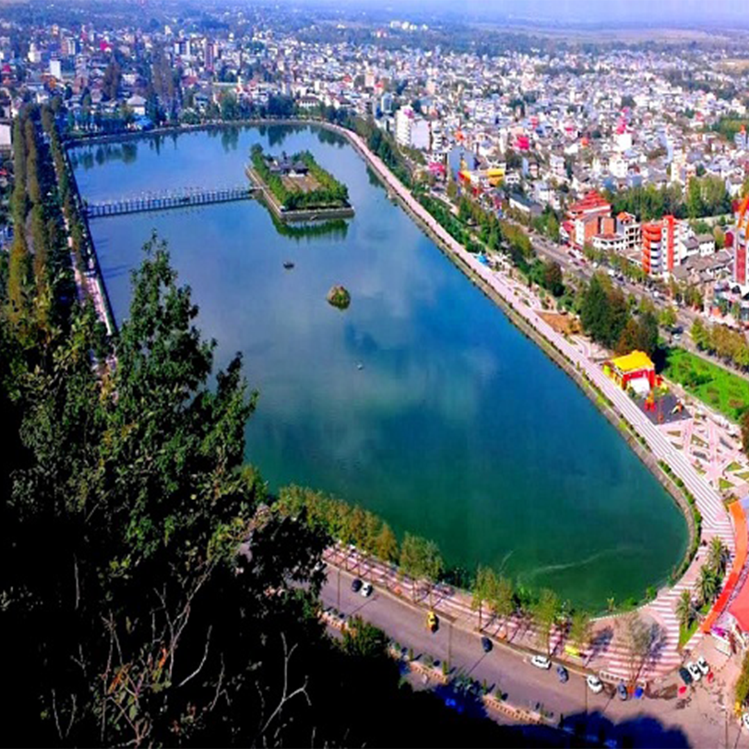 استخر بزرگ لاهیجان زیر قله شیطانکوه با وسعت ۱۷ هکتار و جزیرهای به نام «میانپشته» است که با پل سیمانی به حاشیه جنوبی وصل میشود. این استخر تاریخی به دستور شاه عباس صفوی ساخته شده و قصر او در جزیره بوده که اکنون اثری ندارد.